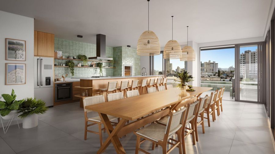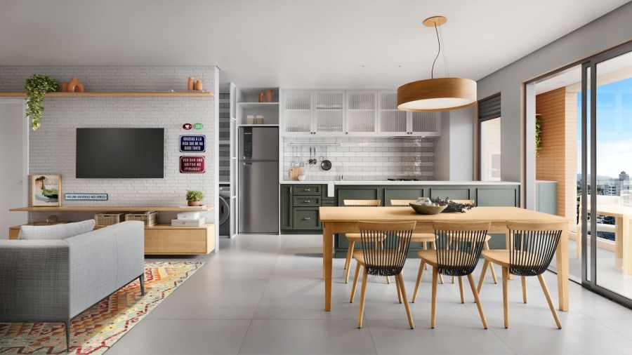 Internamente, o apartamento conta com doi dormitórios - incluindo uma suíte - dois banheiros e duas salas amplas, ideais para criar ambientes de convivência e bem-estar. A cozinha integrada à área de serviço revela praticidade e organização, facilitando as tarefas do dia a dia sem comprometer a estética. Uma vaga na garagem completam a infraestrutura, garantindo conforto e segurança para até seis moradores. Tudo isso pensado para famílias que valorizam espaço e funcionalidade em cada metro quadrado.