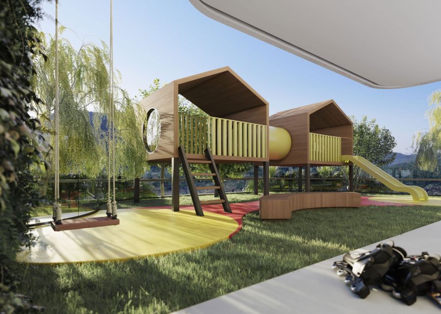 * Salão de jogos, brinquedoteca e playground.
