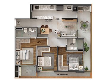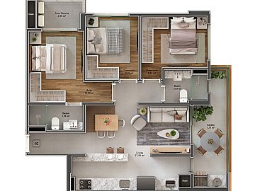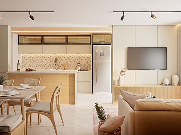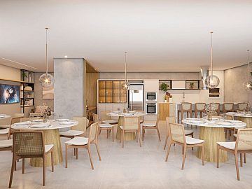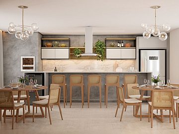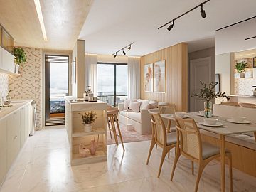 Com uma área privativa de 85,50 m² e área total de 140,00 m², o apartamento possui uma planta otimizada e bem distribuída. A unidade conta com 3 dormitórios, sendo 1 suíte, 2 banheiros e salas integradas, proporcionando conforto e amplitude. A cozinha em estilo americano conecta-se à área social, que se estende para uma sacada com churrasqueira, diferencial indispensável para o perfil de moradia atual. O imóvel dispõe ainda de uma vaga de garagem privativa.