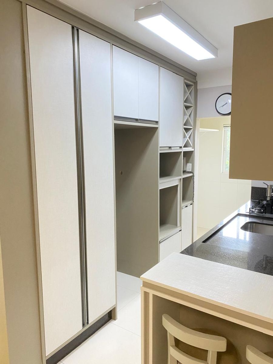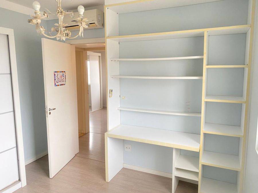O apartamento possui uma planta inteligente e bem distribuída, com 101,15 m² de área privativa e 160 m² de área total. O layout prioriza o conforto e a funcionalidade, oferecendo três suítes plenas, o que garante máxima privacidade aos moradores. A área social é composta por duas salas integradas, lavabo e uma cozinha em estilo americano, favorecendo a amplitude do ambiente. A sacada com churrasqueira estende a área de convivência, sendo um diferencial indispensável no mercado catarinense. O imóvel é entregue semimobiliado e conta com sistema de água quente e uma vaga de garagem.